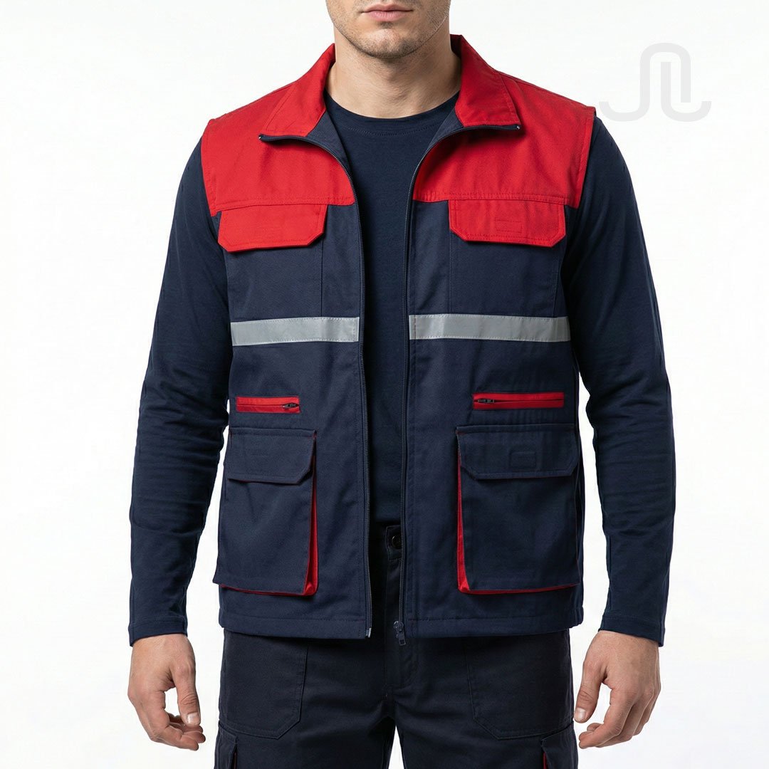 Chaleco fabricado en tela semi impermeable y térmica, elaborado en 100% poliéster, modelo combinado. Incorpora 6 bolsillos funcionales y forro polar interno, que brindan mayor abrigo, comodidad y protección para uso laboral y actividades de campo.